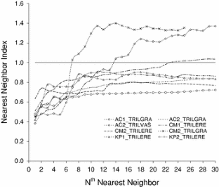 Clark PJ, Evans FC (1954) Distance to nearest neighbor as a measure of spatial relationships in populations. Ecology 35:445–453