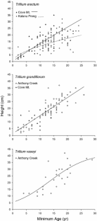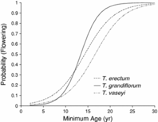 Hanzawa FM, Kalisz S (1993) The relationship between age, size, and reproduction in Trillium grandiflorum (Liliaceae). Am J Bot 80:405–410