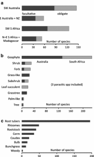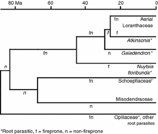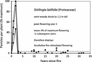 We thank Allan Tinker for his observations on the Eneabba Plain flora, 300 km north of Perth, Ben Miller for his ideas on possible fitness benefits, Kingsley Dixon for information on flowering requirements of Pyrochis nigricans, Adrienne Markey for assisting with data collection for Fig. 1, Tianhua He for analyzing the Santalales chronogram for fire proneness (Fig. 9), and the three reviewers and Neal Enright for their helpful comments.