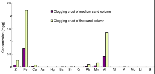 To avoid the water quality deterioration that are caused by artificial recharge (AR) of groundwater, potable drinking water has been used as one of the source water for AR to control the side effects caused by the over-exploitation of groundwater. Chemical clogging problems can still be caused by certain chemical components, especially Fe and Al, and a lower concentration of these elements can cause a notable decrease in hydraulic conductivity at the top layer of the infiltration medium. Some components in AR source water can be obstructed by the clogging layer, leading to a change in water quality. The accumulation of total suspended solids (TSS) at the clogging layer can cause physical clogging and worsen the degree of chemical clogging. Although clogging and the related change in water quality were the dominant issues that affect the infiltration rate and health risks during the AR process, the dissolution of the aquifer matrix should also be taken into account. This dissolution contributed to not only the hydraulic conductivity of the infiltration medium but also the potential change in water quality during the aquifer recharge, storage and recovery processes.