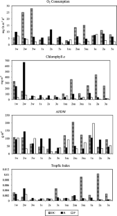 The structural features and O2 consumption of the epipelic biofilm in streams of the Pampean plain were explored. The study was conducted in three lowland streams subjected to different anthropic disturbances. Three sampling sites were selected in different sectors of these streams considering land use intensity (high, moderate, and low). Samples of the water and of the epipelic biofilm were taken seasonally. El Pescado stream is subjected to a low level of human impact and showed lower organic matter and nutrient contents than the Rodríguez and Don Carlos streams which are subjected to moderate and high levels of human impact. The biofilm composition of the three streams was represented by cyanophytes and diatoms but with different species composition and dominance; protozoans and nematodes were the characteristic heterotrophic groups in the three streams. The Rodríguez and Don Carlos streams showed the highest abundance of organisms. Multiple regression showed that O2 consumption, chlorophyll a and trophic index were significantly correlated with the oxygen demands. On the other hand, the Rodríguez and Don Carlos streams exhibited significant differences with the El Pescado stream in O2 consumption, trophic index, and chlorophyll a content. Our results demonstrated that the different biological descriptors responded to environmental variables that are influenced by the different land use intensities, being chlorophyll a, abundance of organisms, and O2 consumption the most sensitive variables to the changes water quality.