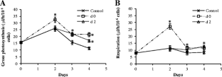 The triazole fungicide epoxiconazole is extensively used to control fungi on crops and may present some potential risk from runoff on coastal ecosystems located close to agricultural areas. Phytotoxicity assessments were conducted on the marine diatom Chaetoceros calcitrans using both the active ingredient and its formulated product (Opus). The 3-day EC50 using cell count was 2.31 mg/L for epoxiconazole active ingredient and 2.9 μg/L for epoxiconazole-formulated. The fungicide produced an increase of cellular volume, pigment (chlorophylls a, c, and carotenoids) content, ATP synthesis, and rates of photosynthesis and respiration. Progressive algal cell recovery from epoxiconazole effects occurred after 3 days, with the increasing cell density. Differences in cell age, light, and nutrient composition induced changes in epoxiconazole sensitivity. Since these parameters affect cellular division rates, the cellular density is an important parameter in toxicity tests.
