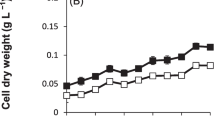 The green microalga Chlorella zofingiensis can produce the ketocarotenoid astaxanthin under heterotrophic culture conditions. Here we report the growth-associated biosynthesis of astaxanthin in this biotechnologically important alga. With glucose as sole carbon and energy source, C. zofinginesis grew fast in the dark with rapid exhaustion of nitrogen and carbon sources from media, leading to a high specific growth rate (0.034 h−1). Cultures started at a cell concentration of about 3.4 × 109 cells l−1 reached, after 6 days, standing biomass values of 1.6 × 1011 cells or 8.5 g dry weight l−1. Surprisingly, the biosynthesis of astaxanthin was found to start at early exponential phase, independent of cessation of cell division. A general trend was observed that the culture conditions benefiting cell growth also benefited astaxanthin accumulation, indicating that astaxanthin was a growth-associated product in this alga. The maximum cell dry biomass and astaxanthin yield were 11.75 g l−1 and 11.14 mg l−1 (about 1 mg g−1), simultaneously obtained in the fed-batch culture with a combined glucose–nitrate mixture addition, which were the highest ever reported in dark-heterotrophic algal cultures. The possible reasons why dark-heterotrophic C. zofingiensis could produce astaxanthin during the course of cell growth were discussed.