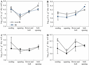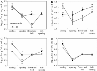 Donegan KK, Palm CJ, Fieland VJ, Porteous LA, Ganio LM, Schaller DL, Bucao LQ, Seidler RJ (1995) Changes in levels, species and DNA fingerprints of soil microorganisms associated with cotton expressing the Bacillus thuringiensis var. kurstaki endotoxin. Appl Soil Ecol 2:111–124. doi:10.1016/0929-1393(94)00043-7