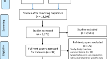 Nineteen of the 22 studies provided data to potentially be included in 1 or more meta-analyses. The interventions report on agonistic pharmacological interventions (buprenorphine, methadone) and antagonistic pharmacological interventions (naltrexone and naloxone) compared with no intervention, other non-pharmacological treatments (e.g. counselling) and other pharmacological drugs (vigabatrin and cyclazocine). The comparisons are shown in Table 3 and in Fig. 3.