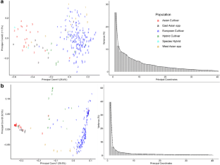 SSR data for the 237 accessions genotyped with the USPGR set as well as the 152 accessions genotyped with the ECPGR set are available in GRIN-GLOBAL at https://npgsweb.ars-grin.gov/gringlobal/method.aspx?id=496471. Accession numbers (PI numbers) and USDA-ARS-NCGR local numbers (CPYR) are included at the GRIN-GLOBAL site and in Supplementary Table S1. SNP data are archived at the Genome Database for the Rosaceae website at https://www.rosaceae.org/publication_datasets, accession number tfGDR1042.