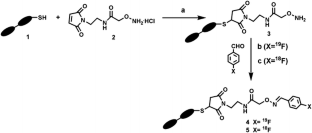 Toyokuni T, Walsh JC, Dominguez A, Phelps ME, Barrio JR, Gambhir SS, Satyamurthy N (2003) Synthesis of a new hetrobifunctional linker, N-[4-(aminooxy)butyl]maleimide, for facile access to a thiol-reactive 18F-labeling agent. Bioconjug Chem 14:1253–1259