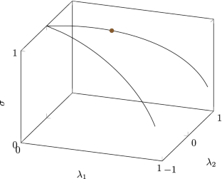 Then \(\text {pr}[Z(a,b)\in A_{ij}]=\text {pr}[X=(i,j)]=p_{ij}\) when \(A_{ij}\) are the quadrants \(A_{00}=[-\infty ,0]\times [-\infty ,0]\), \(A_{01}=[0,\infty ]\times [-\infty ,0]\), \(A_{10}=[-\infty ,0]\times [0,\infty ]\), and \(A_{11}=[0,\infty ]\times [0,\infty ]\). Thus Z(a, b) induces X through discretization when \(\tau _{1}=\tau _{2}=0\). We now let \(a = 1/b\). When \(b \rightarrow 0^+\), we get a correlation converging to 1. When \(b \rightarrow \infty \), we get a correlation converging to \(-1\). This is visually obvious, as the points get closer and closer to a straight line, and is confirmed algebraically in the online appendix accompanying this paper. At the end of the online appendix, we also show that any intermediate value is possible, which is a consequence of the continuity of the correlation of Z as a function of b.