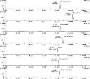 Each year, large quantities of pharmaceuticals are consumed worldwide for the treatment and prevention of human and animal diseases. Although the drugs and the metabolites observed in the wastewaters and in the environment are present at concentrations several orders of magnitude lower than the concentrations required to exert their effects in humans or animals, their long-term impact on the environment is commonly not known. In this study, the occurrence of six antihistamines, which are used for the relief of allergic reactions such as hay fever, was determined in sewage treatment plants wastewaters and in recipient river waters.