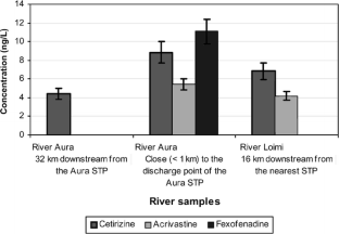 The highest concentrations of antihistamines in STP wastewaters correlate with the outbreak of allergic reaction caused by high amounts of plant pollens in the air. The analysis results of the river water samples show that the antihistamines are carried far away from the effluent discharge points. They may account for a part of the mix of pharmaceuticals and of pharmaceutical metabolites that occur downstream of STPs.