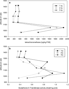 Schröder P, Belford EJ (1996) Untersuchung zur Aktivität von Glutathion S-Transferase in Nadeln von Fichten im Schulterberg- und Christlumprofil. FBVA-Ber 94:75–82