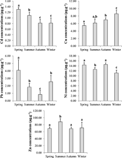 Malea P, Kevrekidis T, Potouroglou M (2013) Seasonal variation of trace metal (Mn, Zn, Cu, Pb, Co, Cd) concentrations in compartments of the seagrass Cymodocea nodosa. Bot Mar 56:169–184