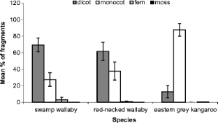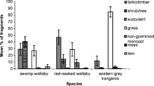 Di Stefano J, Newell GR (2008) Diet selection by the swamp wallaby (Wallabia bicolor): feeding strategies under conditions of changed food availability. J Mammal 89:1540–1549