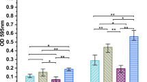 The spectra showed clearly polyethylene chemical changes over time of the experiment, in all cases. In the range of approximately 3600–3200 cm−1 (A, Fig. 4) is the appropriate band -OH group, which may be part of the carboxyl group. The presence of the hydroxyl group provides an oxidization polyethylene chain, then attachment of a hydrogen atom and acidification of the medium. The oxidization influences on the properties of polyethylene, giving their surface more adhesive and hydrophilic. It should be mentioned, that the acidification might be the result of presence of microorganisms metabolites. This -OH band was observed particularly in the spectra of samples collected 36 and 40 days of the experiment (data not shown), and also 44 days of experiment (44. day presented on Fig. 4). The bands in the range of approximately 3000–2840 cm−1 (B, Fig. 4) corresponding to the -CH bonds remain unchanged, as it is a basic part of the molecule and is characteristic of aliphatic hydrocarbons. The same origin have bands observed at 1450 cm−1 (D, Fig. 4) (Silverstein and Webster 2005). Particularly important are the bands occurred in the range of approximately 1730–1650 cm−1. This is a result of the presence of the carbonyl group -C = O. The group is formed by embodying an oxygen atom in the damaged structure of the polyethylene chain. Thus, already the first spectrum of the sample from the assay 1 (Fig. 4, assay 1, sample 1—day 20, C) shows a weak vibration of the carbonyl group, increasing with time of the experiment. Under vibration approximately 1150–1075 cm−1 (E, Fig. 4), a range ether bonds -C -O -C- is observed. This type of bond is the result of the embodying oxygen atom between the C-C bonds weakened due to the high electronegativity of oxygen and the affinity of oxygen to carbon. In terms of 900–735 and less than 700 cm−1 vibrations (F and H, respectively, Fig. 4), there are bands of skeletal vibrations. The higher and more intensive absorbance presented in the area, the weaker the structure of the test compound. This is due to the fact that the cleavage or forming new bonds, the conformation of polyethylene structure is changed. The structure became more loose, which reduces the energy level and enhances atoms vibrations (Silverstein and Webster 2005).