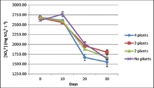 Acid mine drainage (AMD) is extremely acidic, sulfate-rich effluent from abandoned or active mine sites that also contain elevated levels of heavy metals. Untreated AMD can contaminate surface and groundwater and pose severe ecological risk. Both active and passive methods have been developed for AMD treatment consisting of abiotic and biological techniques. Abiotic techniques are expensive and can create large amounts of secondary wastes. Passive biological treatment mainly consists of aerobic or anaerobic constructed wetlands. While aerobic wetlands are economical, they are not effective if the pH of the AMD is < 5. Anaerobic wetlands use organic-rich substrates to provide carbon source to iron- and sulfate-reducing bacteria. The efficiency of these systems declines overtime and requires continuous maintenance. Our objective is to develop an alternative, low-cost, and sustainable floating wetland treatment (FWT) system for AMD for the abandoned Tab-Simco coal mining site in Illinois using vetiver grass (Chrysopogon zizanioides). Tab-Simco AMD is highly acidic, with mean pH value of 2.64, and contains high levels of sulfate and metals. A greenhouse study was performed for a 30-day period in order to screen and optimize the necessary parameters to design a FWT system. Water quality and plant growth parameters were continuously monitored. Results show significant SO4 2− removal, resulting in increased pH, particularly at higher planting densities. Vetiver also helped in metal removal; high amounts of Fe, Zn, and Cu were removed, with relatively lower amounts of Pb, Al, and Ni. Iron plaque formation on the root was observed, which increased metal stabilization in root and lowered root to shoot metal translocation. Vetiver was tolerant of AMD, showing minimal change in biomass and plant growth. Results obtained are encouraging, and a large scale mesocosm study is now in progress, as the next step to develop the vetiver-based system for AMD treatment.
