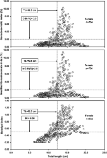 Fontoura NF, Braun AS, Milani PCC (2009) Estimating size at first maturity (L 50) from gonadossomatic index (GSI) data. Neotrop Ichthyol 7:217–222