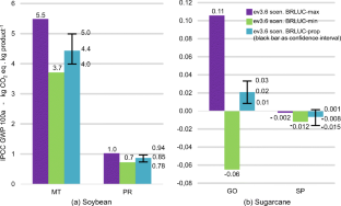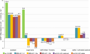Results showed that small changes in data sources and premises have large impacts on emissions associated with LUC in agricultural products. It also showed the large impacts of uncertainties of LUC patterns. Improving current models in better representing regional LUC patterns, regional carbon stocks and uncertainty accounting could reduce these impacts. Nonetheless, efforts in reducing the complexity of LUC accounting methods could enhance transparency and effectiveness.