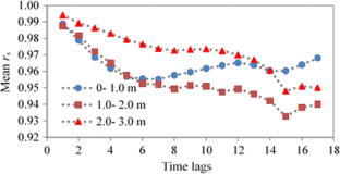 The mean spatial SWS in the shallow soil layer (0–1.0 m) was relatively more variable temporally than in the deeper soil layers (1.0–3.0 m), and the mean SWS in the deep soil layer (2.0–3.0 m) was more variable spatially. The mean Spearman’s rank correlation coefficient increased with increasing soil depth and decreased with increasing time lags between measurements for the deeper soil layers (1.0–3.0 m). The number of temporally stable locations and the accuracy of prediction for predicting the mean SWS increased with increasing soil depth. The temporal stability of the SWS patterns was controlled by soil texture, organic carbon content, bulk density, and saturated soil hydraulic conductivity. Aboveground biomass and site elevation (except for the 2.0–3.0-m layer), however, affected the temporal persistence of SWS relatively weakly.