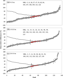 Soil moisture was measured with neutron probes to a depth of 3.0 m on 18 sampling dates at 135 locations along a landscape transect from August 2012 to October 2013. Temporal stability of SWS at a landscape scale and a point scale was examined using Spearman’s rank correlation analysis and indices of standard deviation of relative difference and mean absolute bias error, respectively.