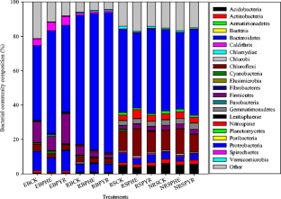 The community structures of rhizospheric (RB) and endophytic bacteria (EB) of salt marsh plant (Spartina alterniflora) grown in phenanthrene (PHE)- and pyrene (PYR)-contaminated sediments (for 70 days) were investigated using the barcoded Illumina paired-end sequencing technique.