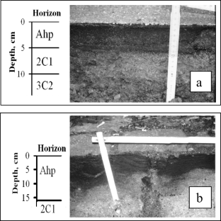 Six Dialeimmasols were investigated. The examples covered the area from the fringe to the center and heavy industry sites of a city. They included an underpass. To identify particles and compounds of the loose material, samples were taken in thin layers from 0 to 0.2, 0.2–1.0, 1–2, and 2–5 cm in the gaps and in the deeper part. Soil color, texture, pH, carbonate content, organic carbon, C/N ratio, iron, and manganese content were determined.
