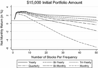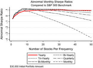 On the other hand, the investor could theoretically have a minimum of five different stocks in the portfolio at any given time, if the same top performers remain in the “winner portfolio” each quarter.