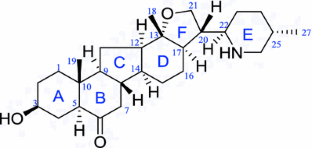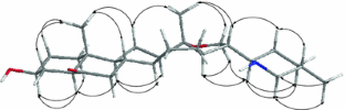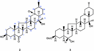 A novel steroidal alkaloid, suchengbeisine (1), along with two known steroidal alkaloids, N-oxide of verticinone (2) and zhebeininoside (3), were isolated from the bulbs of Fritillaria shuchengensis S. C. Chen et S. F. Yin. The structures of these compounds were elucidated by intensive spectroscopic methods, including NMR, IR, CD and MS.