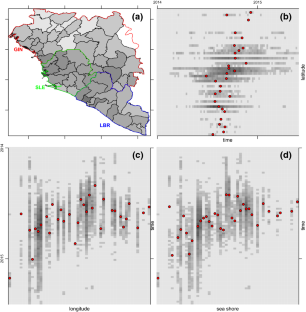 Equations (A-3)–(A-13) ensure that \(\dot{V(t)}\le 0\). Further, the equality \(\frac{\mathrm{d}V}{\mathrm{d}t}=0\) holds only if \(S_1=S_1^{*}\), \(S_2=S_2^{*}\)\(E=E^{*}\), \(I=I^{*}\), and \(D=D^{*}\). Thus, the endemic equilibrium state (5) is the only positive invariant set to the system (1) contained entirely in \(\biggl \{(S_1, S_2, E, I, D) \in \Omega : S_1=S_1^{*}, S_2=S_2^{*}, E=E^{*}, I=I^{*}, D=D^{*} \biggr \}\). Hence, it follows from the LaSalle’s invariance principle (LaSalle 1976) that every solutions to the Eq. (1) with initial conditions in \(\Omega \) converge to endemic equilibrium point, \(\Gamma ^{*}\), as \(t\rightarrow \infty \). Thus, the positive endemic equilibrium is globally asymptotically stable. \(\square \)