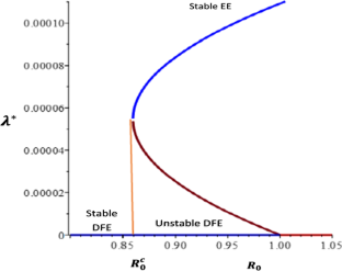 $$\begin{aligned} \begin{aligned} {\dot{V}}(t) \le&\, \lambda ^* S_1^*\bigg (2-\frac{S_1^*}{S_1}-\frac{E}{E^*}-\frac{\lambda S_1 E^*}{\lambda ^* S_1^* E}+\frac{\lambda }{\lambda ^*}\bigg )\\&\quad +v\lambda ^* S_2^*\bigg (2-\frac{S_2^*}{S_2}-\frac{E}{E^*}-\frac{\lambda S_2 E^*}{\lambda ^* S_2^* E}+\frac{\lambda }{\lambda ^*}\bigg )\\&\quad +\lambda ^* S_1^*\bigg (\frac{E}{E^*}-\frac{I}{I^*}-\frac{I^* E}{I E^*}+1\bigg )\\&\quad +v\lambda ^* S_2^*\bigg (\frac{E}{E^*}-\frac{I}{I^*}-\frac{I^* E}{I E^*}+1\bigg )\\&\quad +v\lambda ^*S_2^*\bigg (\frac{I}{I^*}-\frac{D}{D^*}-\frac{D^* I}{D I^*}+1\bigg ). \end{aligned} \end{aligned}$$