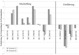 Eine Ausnahme bilden die Analysen für Schleswig-Holstein 1971/72 und Brandenburg 2007/08. In beiden Bundesländern gab es im Zeitraum des Szenarios B weitere wichtige schulrechtliche Änderungen, sodass eine Analyse hier nicht sinnvoll ist (s. Tab. 1).