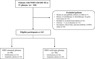 Han L, Wang S, Miao Y, Shen H, Guo Y, Xie L, et al. MRI texture analysis based on 3D tumor measurement reflects the IDH1 mutations in gliomas—a preliminary study. Eur J Radiol. 2019;112.169–179. https://doi.org/10.1016/j.ejrad.2019.01.025.