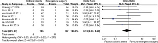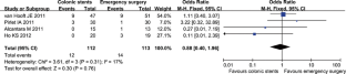Tan CJ, Dasari BV, Gardiner K. Systematic review and meta-analysis of randomized clinical trials of self-expanding metallic stents as a bridge to surgery versus emergency surgery for malignant left-sided large bowel obstruction. Br J Surg. 2012;99:469–476.