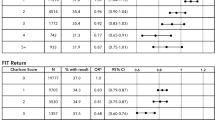 In the primary multivariable analysis, the odds of FIT completion in the second year were significantly lower than those in the first year: predicted probabilities of FIT return dropped from 44 to 38% (Table 3). Associations with FIT completion (in either year) were being over 65 (vs ≤ 65), being Asian (vs white race), having a non-English preference (vs English), not using tobacco, having obtained a mammogram in the past 2 years or a flu vaccine in the past year, and living in a smaller city (Table 3). The median OR for clinic differences was 1.44 (95% CI 1.21–1.98), indicating a patient’s relative median odds of returning a FIT if s/he attends a clinic with a higher FIT return rate as compared to a clinic with a lower FIT return rate.