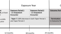 To assess characteristics of our study cohort, we abstracted demographic information (age at baseline, sex, race/ethnicity, language, marital status, and insurance status); substance use, mental health, and other medical diagnoses; and prescription of controlled medications. Diagnoses were abstracted from all available EHR data. Baseline opioid dose was determined by examining opioid registry Excel files for the period prior to discontinuation and identifying the first of three consecutive opioid prescriptions written by the same prescriber for the same opioid medication, dose, and number of tablets. It was converted to morphine equivalent dose (MED)10 and summed, in the case of multiple prescribed opioids.