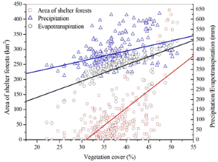 The Horqin Sandy Land (HSL), the largest sandy land in the semi-arid agro-pastoral ecotone of Northeast China, has been subject to desertification during the past century. In response, and to control the desertification, government implemented the Three-North Shelter/Protective Forest Program, world’s largest ecological reforestation/afforestation restoration program. The program began in 1978 and will continue for 75 years until 2050. Understanding the dynamics of desertification and its driving forces is a precondition for controlling desertification. However, there is little evidence to directly link causal effects with desertification process (i.e., on the changing area of sandy land) because desertification is a complex process, that can be affected by vegetation (including vegetation cover and extent of shelter forests) and water factors such as precipitation, surface soil moisture, and evapotranspiration. The objectives of this study were to identify how influencing factors, especially shelter forests, affected desertification in HSL over a recent decade. We used Landsat TM imagery analysis and path analysis to identify the effects of spatio-temporal changes in water and vegetation parameters during 2000–2010. Desertification was controlled during the study period, as indicated by a decrease in desert area at a rate of 163.3 km2 year−1 and an increase in the area with reduced intensity or extent of desertification. Total vegetation cover in HSL increased by 10.6 % during the study period and this factor exerted the greatest direct and indirect effects on slowing desertification. The contribution of total vegetation cover to controlling desertification increased with the intensity of desertification. On slightly and extremely severe desertified areas, vegetation cover contributed 5 and 42 % of the desertification reduction, respectively. There were significant correlations between total vegetation cover and water conditions (i.e., evapotranspiration and precipitation) and the area of shelter forests (P < 0.0001), in which water conditions and the existence of shelter forests contributed 49.7 and 12.8 % to total vegetation cover, respectively. The area of shelter forests increased sharply due to program efforts, but only shrub forests had significant direct effects on reducing the area of desertification categorized as slightly desertified. The reason for the lack of direct effect of increased arbor forests (accounting for 95.3 % of the total increase in shelter forests) on reducing desertification might be that the selected arbor species were not suited to water conditions (low precipitation, high evapotranspiration) prevailing at HSL. The establishment of shelter forests aided control of desertification in the HSL region, but the effect was less than expected. Effective control of desertification in the HSL region or other similar sandy areas will require greater improvements in vegetation cover. In particular, shrub species should be selected for plantation with reference to their potential to survive and reproduce in the harsh climatic and weather conditions typical of desertified areas.
