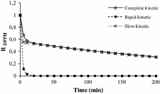 This work presents a standardized methodology for both the extraction of antioxidants from butterhead lettuce and the evaluation of the antioxidant capacity through DPPH methodology. The standardized extraction of antioxidants requires processing the fresh lettuce leaves (1 g) for 1 min, mixing with 10 mL of acidified ethanol (0.5 or 1 % citric acid) maintaining this mixture with continuous shaking during 1 h at 2 °C. After that, a centrifugation at 8,000 rpm for 15 min is necessary to obtain a fist supernatant (antioxidant source). A second extraction step with acetone:water (70:30 v/v) improves the extraction yield. Extracts can be stored for 14 days at −20 °C without changes in its antioxidant capacity. For quantification, a mixture 1:4 of lettuce extract and DPPH (100 μM) must be incubated for 60 min at 2 °C in dark before reading at 517 nm. Expression of results in terms of mg ascorbic acid equivalents/100 g fresh weight is recommended in order to compare results from different studies. A kinetic study of the reaction between lettuce antioxidants and DPPH was adjusted to a biphasic first-order kinetic model and showed evidence of the presence of antioxidants of slow and rapid antioxidants in lettuce extracts.