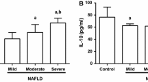 Levels of LBP were increased in obese patients with NAFLD. In addition, plasma level of LBP was increased in patients with steatohepatitis (14.2 ±3.9 μg/mL) when compared with patients with simple steatosis (11.5 ±3.2 μg/mL), P=0.041.The TNF-α mRNA expression in liver tissue was significantly higher in patients with NASH.This increment correlated with the rise in plasma levels of LBP (r=0.412, P=0.036).