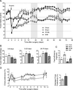Zheng H, Shin AC, Lenard NR, Townsend RL, Patterson LM, Sigalet DL, et al. Meal patterns, satiety, and food choice in a rat model of Roux-en-Y gastric bypass surgery. Am J Physiol Regul Integr Comp Physiol. 2009;297:R1273–82.