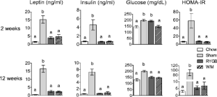 Meirelles K, Ahmed T, Culnan DM, Lynch CJ, Lang CH, Cooney RN. Mechanisms of glucose homeostasis after Roux-en-Y gastric bypass surgery in the obese, insulin-resistant Zucker rat. Ann Surg. 2009;249:277–85.