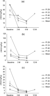 Mean plasma concentrations of atorvastatin and metabolites and rosuvastatin normalized by the unit dose [(nM)/(mg/kg)] decreased by 3- to 6-month post-surgery. Conversely, simvastatin and its metabolite concentrations increased up to 6-month post-surgery, then declined to preoperative levels by 1-year post-surgery. The metabolisms of atorvastatin to hydroxyl-metabolites and simvastatin to simvastatin acid were decreased after RYGB. The weight loss and PD outcomes were comparable between statin and non-statin groups suggesting the key impacts were from RYGB. The discontinuation or reduction of dose of atorvastatin or rosuvastatin post-RYGB exhibited rebounds of LDL levels in some subjects, but the rebound was not apparent with patients on simvastatin pre-surgery.