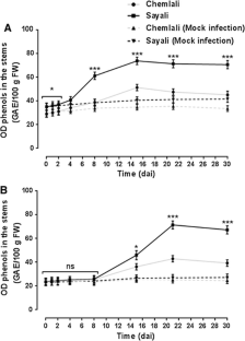 Markakis EA, Tjamos SE, Antoniou PP et al (2010) Phenolic responses of resistant and susceptible olive cultivars induced by defoliating and non-defoliating Verticillium dahliae pathotypes. Plant Dis 94:1156–1162