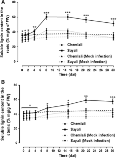 Xu L, Zhu L, Tu L et al (2011b) Lignin metabolism has a central role in the resistance of cotton to the wilt fungus Verticillium dahliae as revealed by RNA-Seq-dependent transcriptional analysis and histochemistry. J Exp Bot 62(15):5607–5621