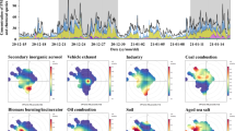 Ambient PM2.5 samples were collected at four sites in Xiamen, including Gulangyu (GLY), Hongwen (HW), Huli (HL) and Jimei (JM) during January, April, July and October 2013. Local source samples were obtained from coal burning power plants, industries, motor vehicles, biomass burning, fugitive dust, and sea salt for the source apportionment studies. The highest value of PM2.5 mass concentration and species related to human activities (SO4 2–, NO3 –, Pb, Ni, V, Cu, Cd, organic carbon (OC) and elemental carbon (EC)) were found in the ambient samples from HL, and the highest and lowest loadings of PM2.5 and its components occurred in winter and summer, respectively. The reconstructed mass balance indicated that ambient PM2.5 consisted of 24% OM (organic matter), 23% sulfate, 14% nitrate, 9% ammonium, 9% geological material, 6% sea salt, 5% EC and 10% others. For the source profiles, the dominant components were OC for coal burning, motor vehicle, biomass burning and sea salt; SO4 2– for industry; and crustal elements for fugitive dust. Source contributions were calculated using a chemical mass balance (CMB) model based on ambient PM2.5 concentrations and the source profiles. GLY was characterized by high contributions from secondary sulfate and cooking, while HL and JM were most strongly affected by motor vehicle emissions, and biomass burning and fugitive dust, respectively. The CMB results indicated that PM2.5 from Xiamen is composed of 27.4% secondary inorganic components, 20.8% motor vehicle emissions, 11.7% fugitive dust, 9.9% sea salt, 9.3% coal burning, 5.0% biomass burning, 3.1% industry and 6.8% others.