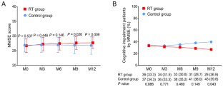 Reminiscence therapy group showed higher MMSE score at M9 and M12, lower cognitive impairment rate by MMSE at M12 compared to control group. As to anxiety, HADS-anxiety score and anxiety rate by HADS were of no difference at each time point, while SAS score and anxiety rate by SAS were lower at M12 in reminiscence therapy group compared with control group. Regarding depression, HADS-depression score and depression rate by HADS at M12, SDS score at M9 and M12, and depression rate by SDS at M12 were all lower in reminiscence therapy group compared with control group. In terms of RFS, it was similar between reminiscence therapy group and control group.