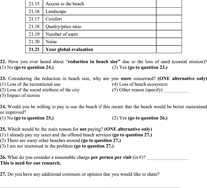 Coastal zones are complex systems where many different human activities and natural processes converge. One of the most profitable and enjoyable activities is beach tourism and recreation; however, coastal erosion can cause not only loss of land and asset values but also loss of environmental and landscape qualities and therefore their recreational value due to passive erosion from shoreline armouring and coastal development. This paper reports results from economic and demographic factors affecting public coastal erosion awareness and willingness to pay on the urban beaches of Cadiz, SW Spain. Although there is a great public awareness of coastal erosion among the interviewed adults from town, the willingness to pay for beach management improvement is minimal. The fact is possibly explained by the low regional economic status and the large number of local residents among the beachgoers. The majority of the respondents said that there should not be any extra charges because they pay regular local taxes and already pay for using beach services.