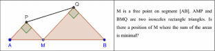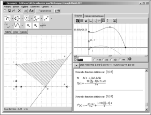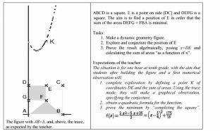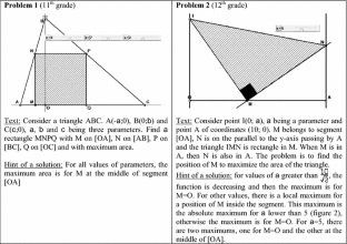 In addition, considering functions in “real world situations” would suppose a space where students could work in a non-mathematical space, for instance around a physical device involving a mechanical dependency. See Lagrange (2013) for an example. Here, for the sake of simplicity, we will keep the type of task of geometric optimization as an object for reflection, and then restrict ourselves to three spaces.