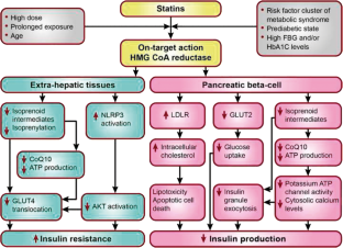 • Chan DC, Pang J, Watts GF. Pathogenesis and management of the diabetogenic effect of statins: a role for adiponectin and coenzyme Q10? Curr Atheroscler Rep. 2015;17(1):472. https://doi.org/10.1007/s11883-014-0472-72015. The association of statin therapy with the development of diabetes may be partly mediated by a statin-induced decrease in circulating adiponectin and coenzyme Q10. The available evidence suggests that statin therapy does not impair glycemic control in diabetic patients.