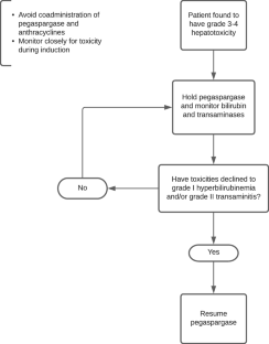 • Burke PW, Aldoss I, Lunning MA, Devlin SM, Tallman MS, Pullarkat V, et al. Pegaspargase-related high-grade hepatotoxicity in a pediatric-inspired adult acute lymphoblastic leukemia regimen does not predict recurrent hepatotoxicity with subsequent doses. Leuk Res. 2018;66:49–56 This retrospective analysis of 51 adult ALL patients reported that, despite high rates of high-grade pegaspargase-associated hepatotoxicity, patients could be safely rechallenged with pegaspargase.