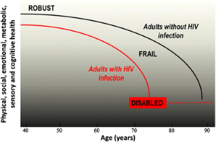 Onen NF, Overton ET. A review of premature frailty in HIV-infected persons; another manifestation of HIV-related accelerated aging. Curr Aging Sci. 2011;4(1):33–41.
