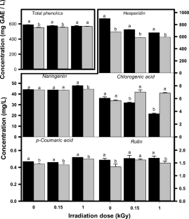 Breitfellner, F., Solar, S., & Sontag, G. (2003). Radiation induced chemical changes of phenolic compounds in strawberries. Radiation Physics and Chemistry, 67(3), 497–499. https://doi.org/10.1016/S0969-806X(03)00092-6.